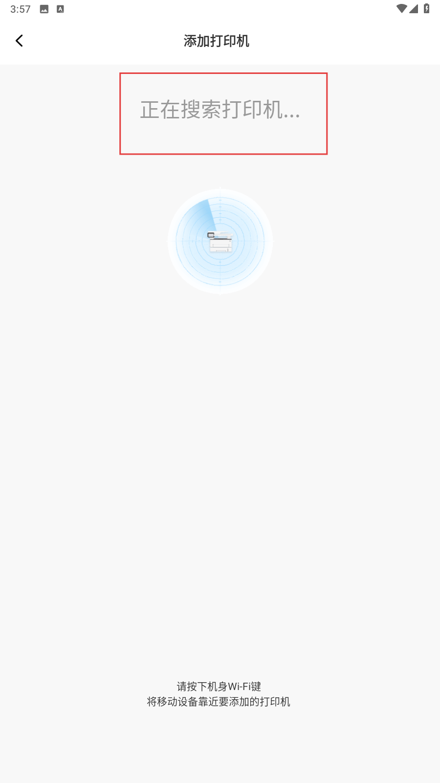 4、當(dāng)前顯示正在搜索打印機(jī),用戶需耐心等待。