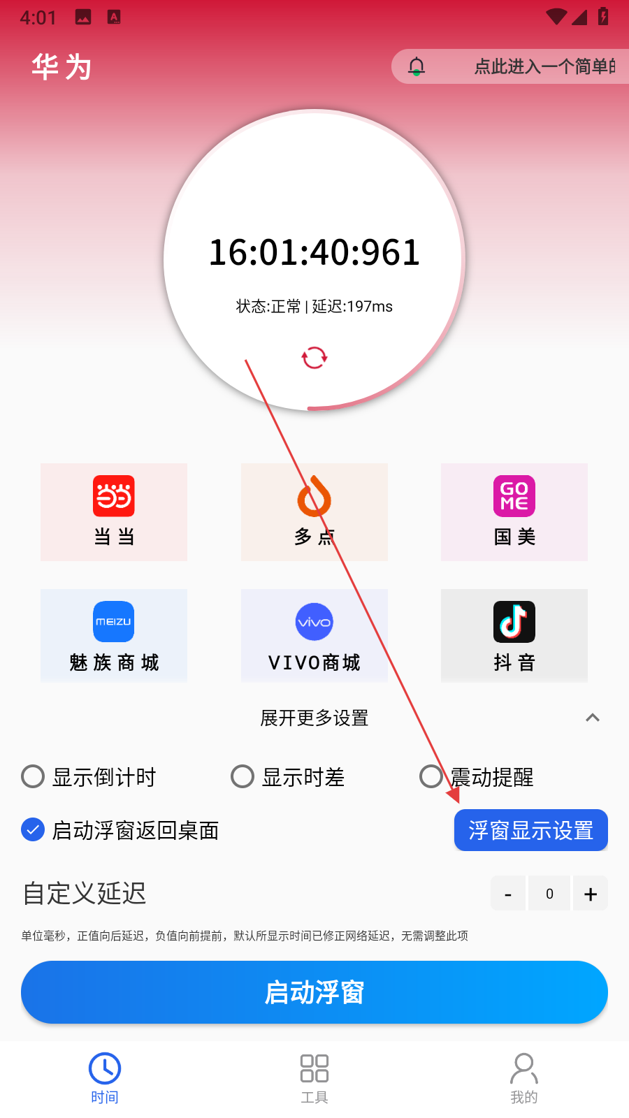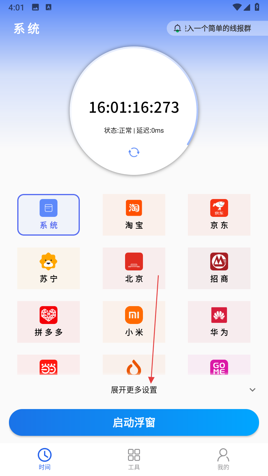 1、打開浮動時間相關(guān)應(yīng)用,進入主界面后,點擊展開更多設(shè)置。