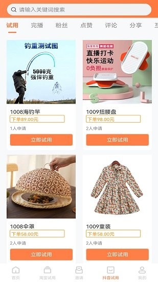 2、平臺的商品試用功能非常的全面,用戶們可以在平臺上申請商品試用,然后就可以和商家進(jìn)行對話溝通,獲得試用資格,免費(fèi)得到商品;
