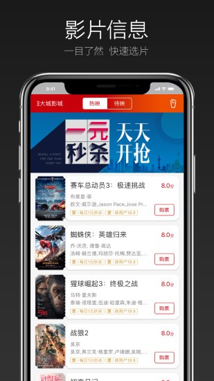 已經(jīng)覆蓋200+城市,5000+影院,讓你享受快速低價(jià)的購(gòu)票體驗(yàn)