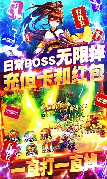 2.簽到領(lǐng)真充卡,日常BOSS無限掉落充值卡、紅包