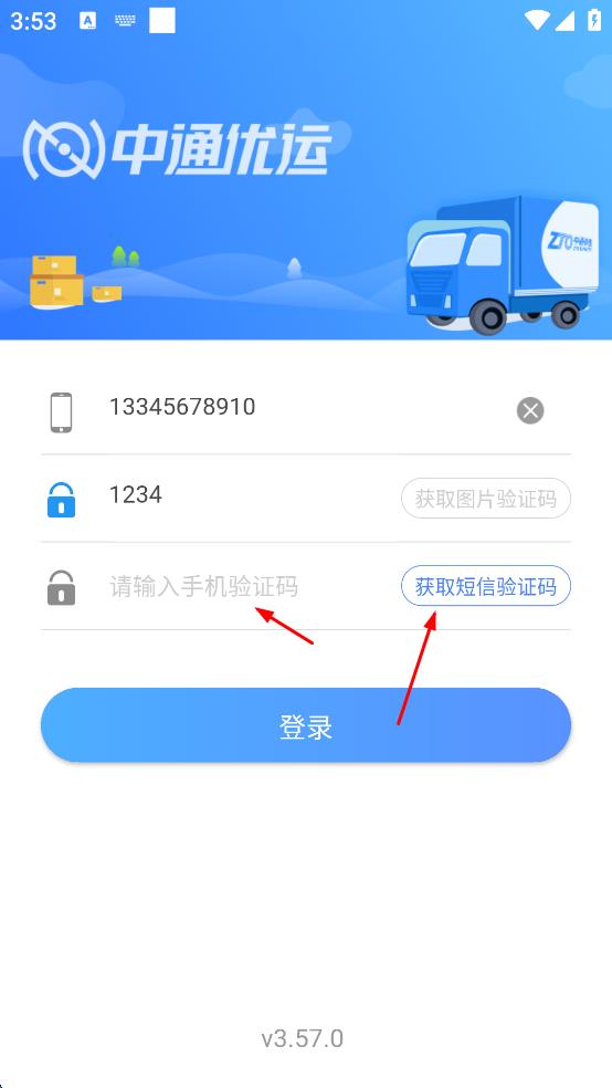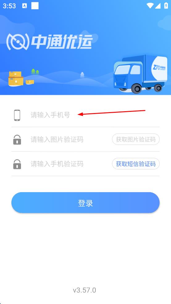 1、打開中通優(yōu)運APP,在登錄頁面的“請輸入手機號”欄輸入要登錄的手機號碼。