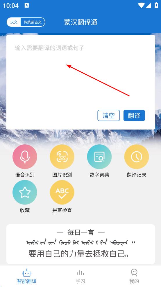 3、進入APP主界面后,在輸入框中輸入需要翻譯的詞語或句子。