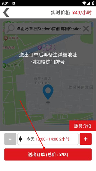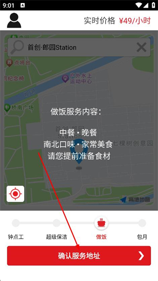 4、選擇時間,點擊送出訂單,完成請阿姨做飯的訂單提交。