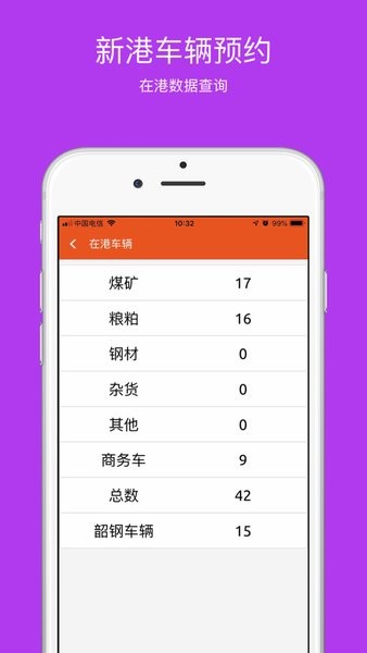 本APP僅應(yīng)用于新港碼頭汽車疏港作業(yè),司機可通過注冊并登錄預(yù)約管理軟件錄入車牌號、將要提取的貨物及預(yù)約時間,管理員審核后車輛即可在預(yù)約時段到港(倉)提貨。包含功能有預(yù)約車輛(長期代理車輛、長期非代理車輛、臨時代理車輛、臨時非代理車輛)、預(yù)約查詢、查詢在港車輛功能。