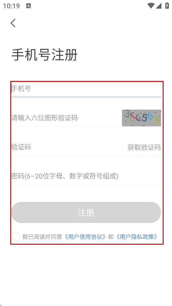 4、在手機號注冊頁面,依次輸入手機號、六位圖形驗證碼、獲取的短信驗證碼以及設(shè)置密碼,然后點擊“注冊”按鈕完成注冊。