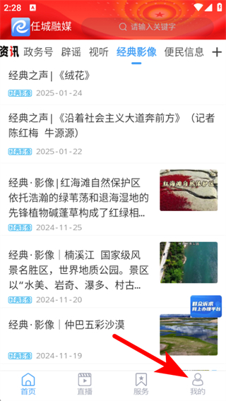 1、在任城融媒的首頁(yè),點(diǎn)擊底部我的按鈕,進(jìn)入個(gè)人的頁(yè)面。