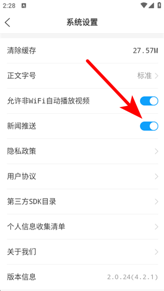 3、在系統(tǒng)設(shè)置頁(yè)面,找到新聞推送的選項(xiàng),點(diǎn)擊按鈕關(guān)閉推送。