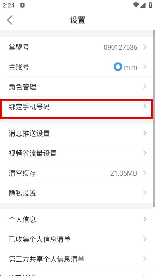 3、進(jìn)入設(shè)置頁(yè)面后,找到并點(diǎn)擊綁定手機(jī)號(hào)碼選項(xiàng)。