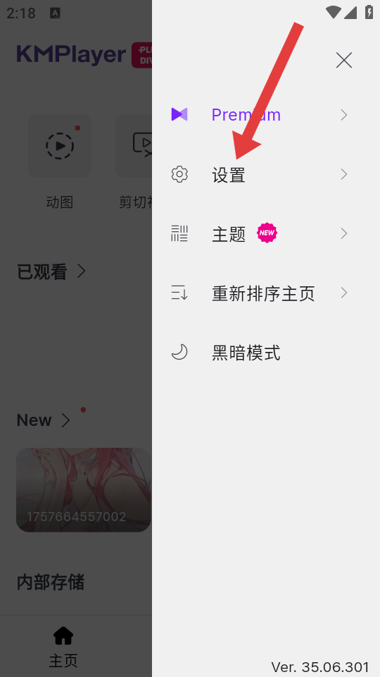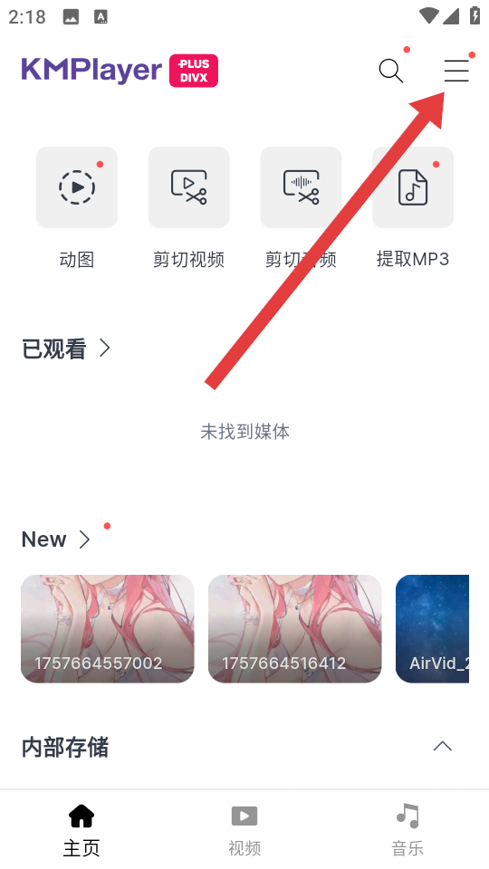 1、在KMPlayer Plus的主頁(yè),點(diǎn)擊右上角的菜單圖標(biāo),打開(kāi)功能菜單。