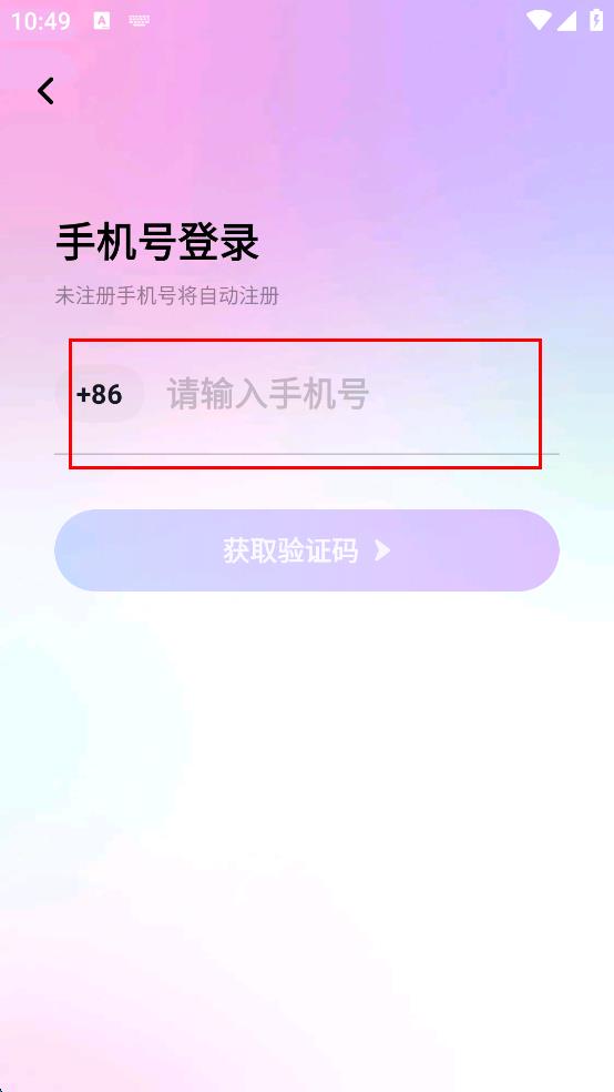 3、在手機(jī)號登錄頁面的輸入框中,輸入自己的手機(jī)號。
