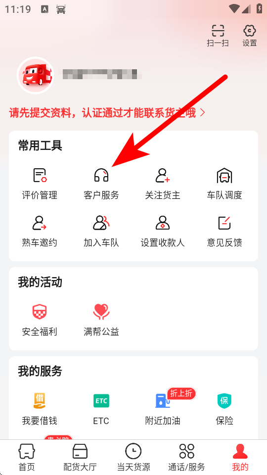 1、進(jìn)入我的頁面,點(diǎn)擊客戶服務(wù),進(jìn)入客戶服務(wù)功能的頁面。