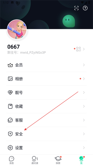 2、進入個人頁面,在個人頁面中找到安全選項并點擊。
