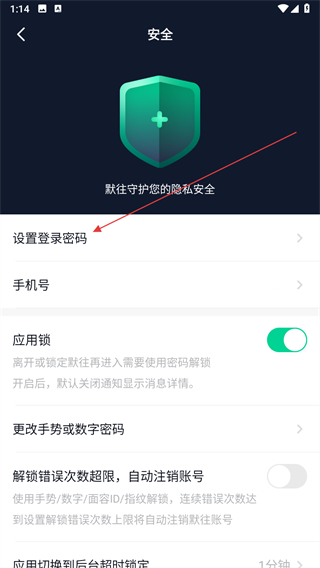3、進入安全界面后,找到設(shè)置登錄密碼選項并點擊,彈出請先設(shè)置登錄密碼的頁面。