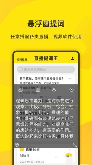 開啟懸浮窗功能,創(chuàng)建文本或?qū)胛谋荆蜷_任意拍攝軟件即可搭配懸浮窗提詞器使用。支持邊播邊看臺詞,懸浮提詞智能拍攝,告別多手機(jī)提詞。