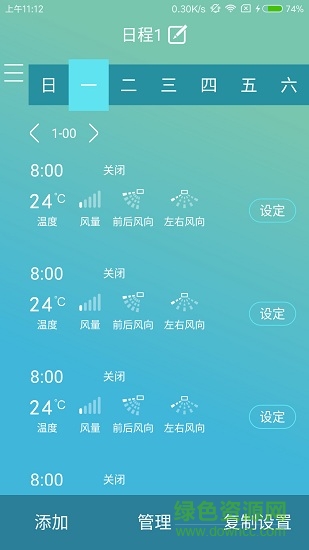 5、支持管理設(shè)定的日程,包括添加、復(fù)制設(shè)置、刪除設(shè)置等,設(shè)備自動(dòng)按照設(shè)置的日程進(jìn)行運(yùn)行;