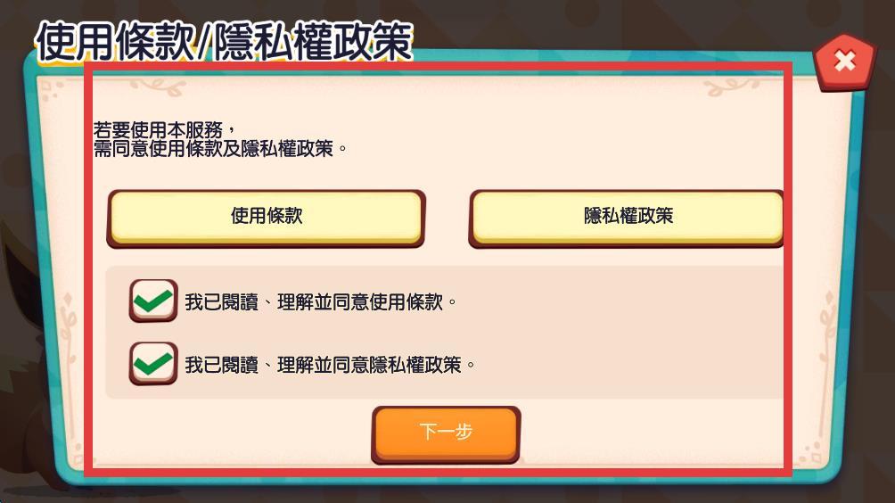 3、勾選我已閱讀、理解并同意使用條款和我已閱讀、理解并同意隱私權(quán)政策,再點(diǎn)擊下一步。