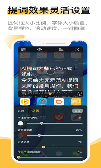 2、提詞設(shè)置:背景透明度,字體、播放速度、顏色等多方位自定義設(shè)置,滿足各場景需求。