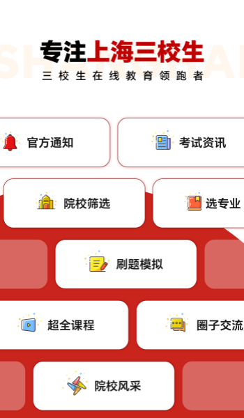 三校升,一個專注上海三校生升學(xué)的在線教育平臺。一站式解決三校生入學(xué)、在讀、升學(xué)、深造一系列疑難雜癥。