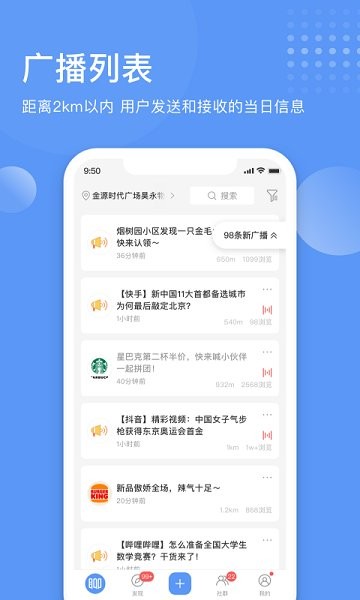 距離2km以內(nèi),用戶發(fā)送和接收的當(dāng)日信息、想看什么,想干什么,觸手可及