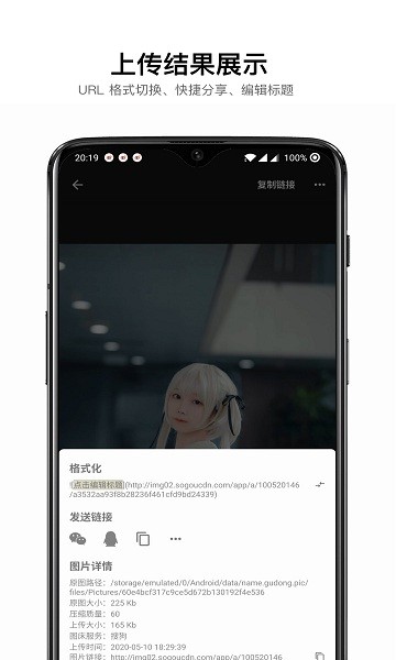 3、傳圖后一鍵分享圖片 Markdown 鏈接到微信、qq。