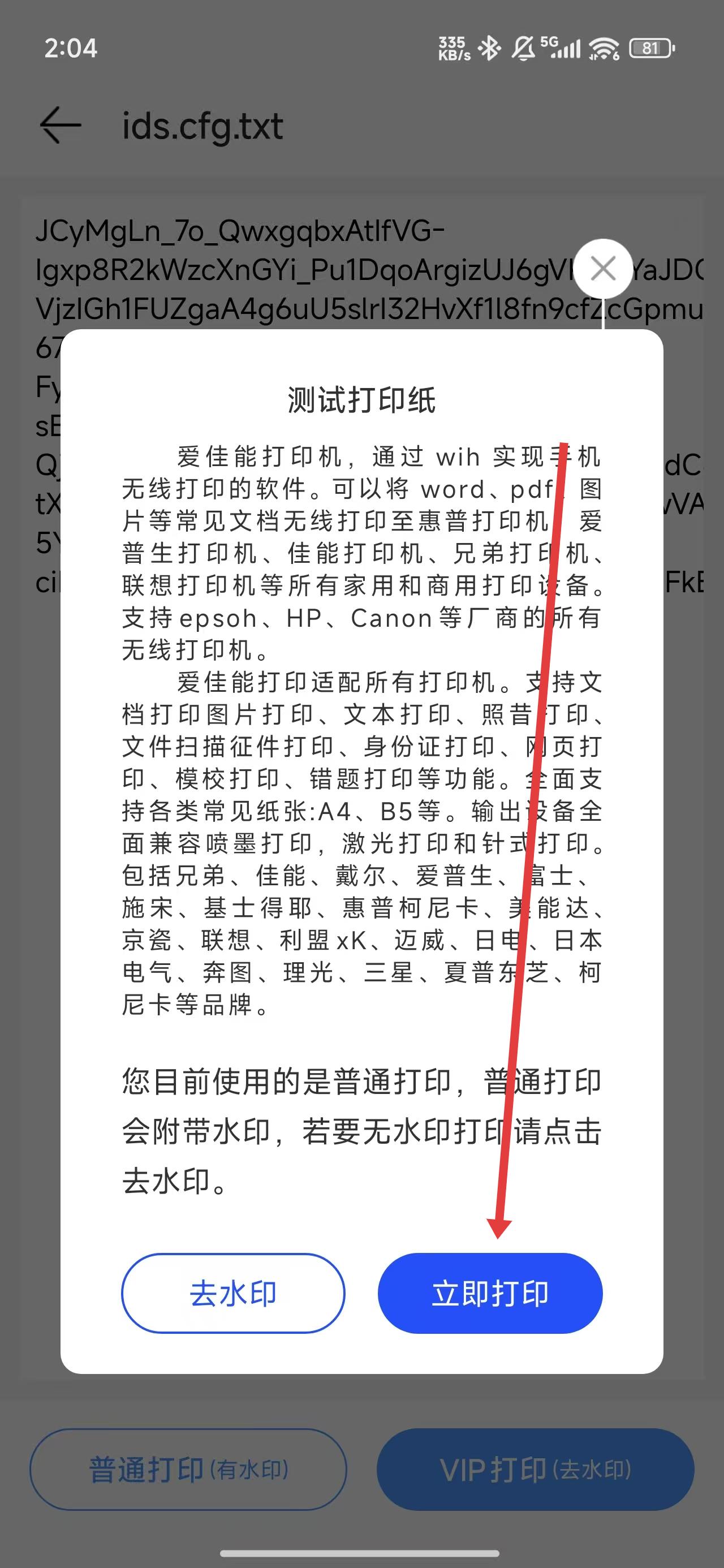 4、在出現(xiàn)的彈窗中,可以通過點(diǎn)擊立即打印按鈕,開始打印。