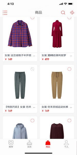 3.優(yōu)衣庫(kù)搭配師為顧客展示優(yōu)衣庫(kù)的各種最新搭配實(shí)例,您可以在其中挑選您心儀的搭配,然后欣賞3d模型,您也可以在優(yōu)衣庫(kù)當(dāng)季新品中,選擇合適的尺碼,顏色,創(chuàng)建全新的搭配,搭出自己的風(fēng)采。