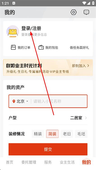 3、在我的頁(yè)面中,找到并點(diǎn)擊上方的登錄/注冊(cè)選項(xiàng)。
