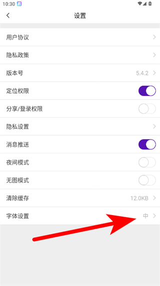 3、在設(shè)置頁面,點擊字體設(shè)置選項,彈出字體大小選擇界面。