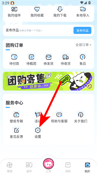 2、在個人中心界面,點擊設(shè)置選項,進(jìn)入設(shè)置頁面。