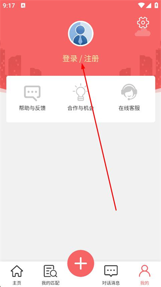 3、在我的頁面中,找到并點(diǎn)擊上方的登錄/注冊選項(xiàng)。