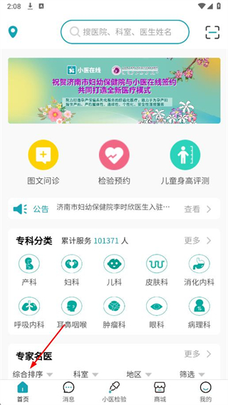 3、注冊(cè)完成后,即可進(jìn)入APP首頁(yè),使用圖文問(wèn)診、檢驗(yàn)預(yù)約、兒童身高評(píng)測(cè)等功能。