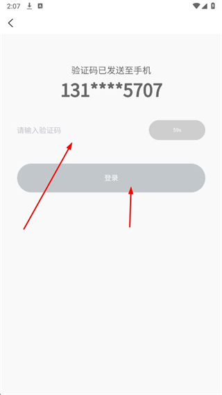 2、在驗(yàn)證碼輸入頁(yè)面,輸入收到的驗(yàn)證碼,點(diǎn)擊登錄按鈕,此操作同時(shí)完成注冊(cè)。