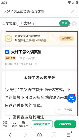4、點擊進入百度文庫頁面,查看太好了怎么讀英語的詳細內(nèi)容。
