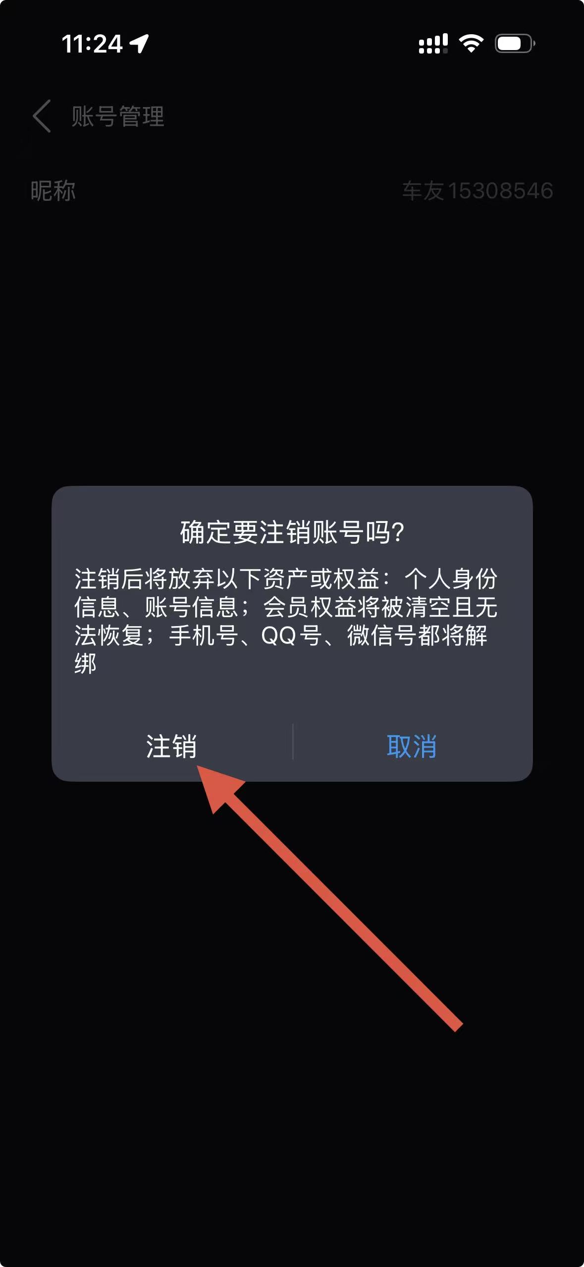 4、在彈出的確認(rèn)注銷提示框中,點(diǎn)擊注銷按鈕,完成賬號(hào)注銷操作。