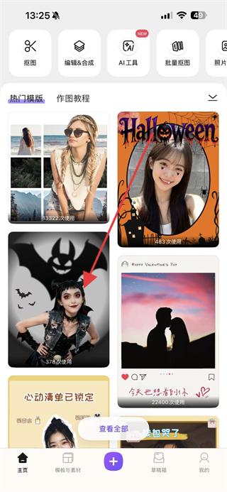 1、打開Photoroom APP,在首頁選擇喜歡的模板,進(jìn)入編輯頁面。