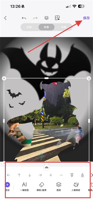 4、調(diào)整完成后點(diǎn)擊右上角保存,即可完成圖片背景的更換操作。