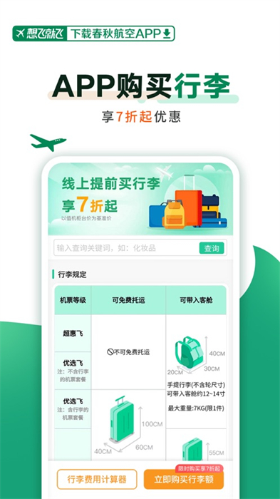 9.買行李,特惠行李額,一鍵輕松擁有。