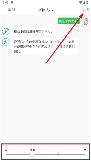 5、在頁(yè)面下方,拖動(dòng)底部滑塊調(diào)整字體大小后,點(diǎn)擊右上角完成即可。
