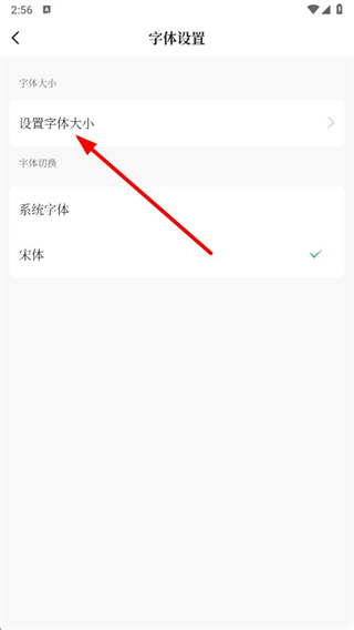 4、在字體設(shè)置頁(yè)面,點(diǎn)擊設(shè)置字體大小選項(xiàng),進(jìn)入字體大小調(diào)整頁(yè)面。