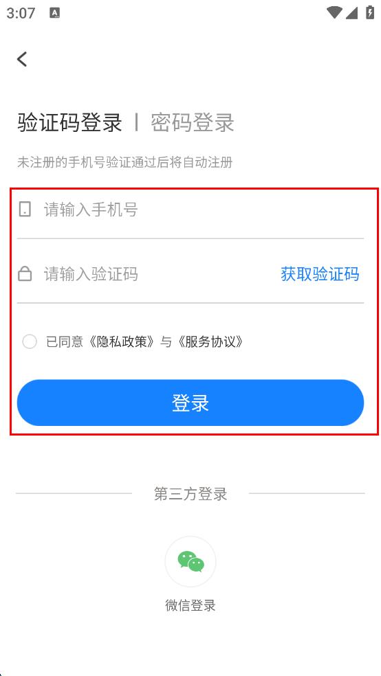 4、在登錄頁面,輸入手機(jī)號,點(diǎn)擊獲取驗證碼,輸入驗證碼,勾選已同意相關(guān)政策和協(xié)議,點(diǎn)擊登錄,即可登錄。