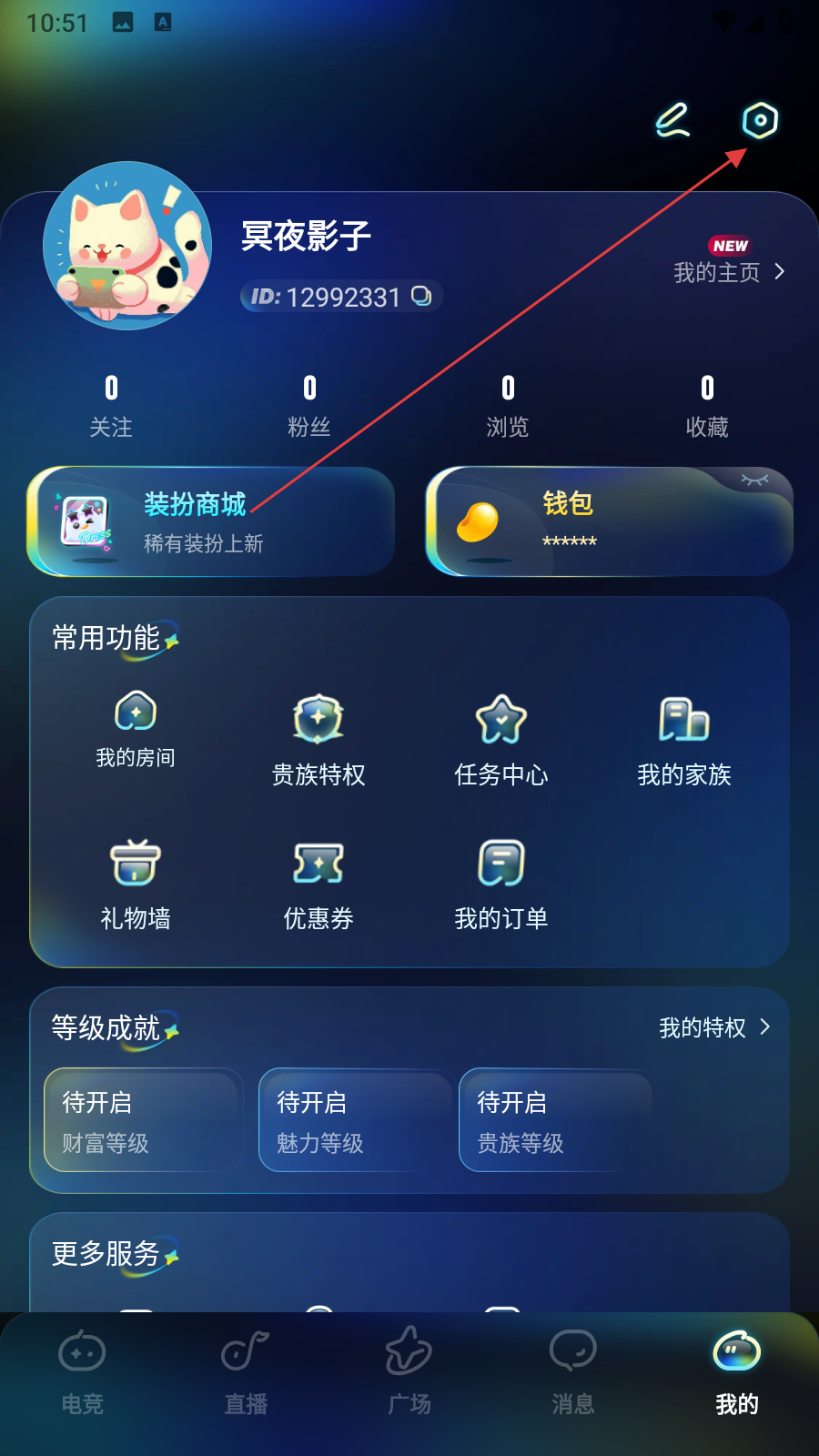 1、打開不鴿電競APP,進入我的頁面,點擊右上角的設(shè)置圖標,進入設(shè)置界面。