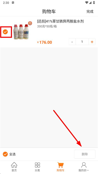 3、在編輯狀態(tài)下,勾選要取消的商品,然后點擊頁面底部的刪除按鈕。