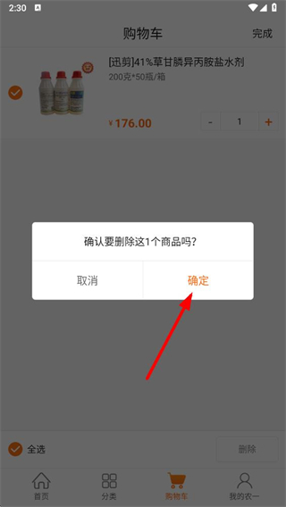 4、在彈出的確認刪除對話框中,點擊確定按鈕,即可取消該商品。