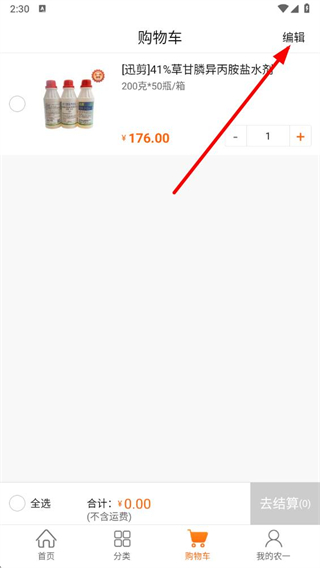 2、在購物車頁面,點擊右上角的編輯按鈕,進入編輯狀態(tài)。