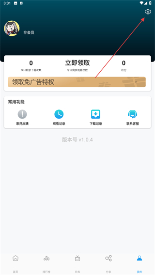 2、進(jìn)入個(gè)人中心的頁(yè)面內(nèi),點(diǎn)擊右上角設(shè)置的功能按鈕。