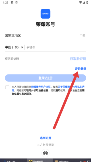 2、在進(jìn)入到登錄頁(yè)面中,可以點(diǎn)擊右側(cè)密碼登錄按鈕,切換登錄的方式。