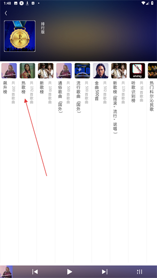 3、在熱歌榜內(nèi),選擇并點擊你要播放的音樂。