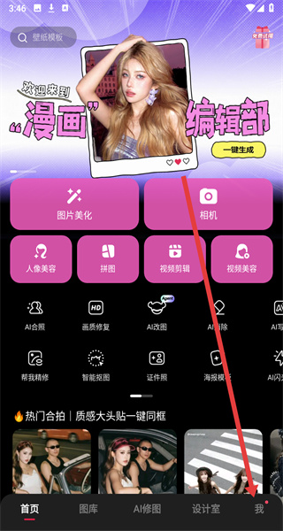 1、在進入到美圖秀秀首頁后,可以點擊下方我按鈕,進入我的主頁。