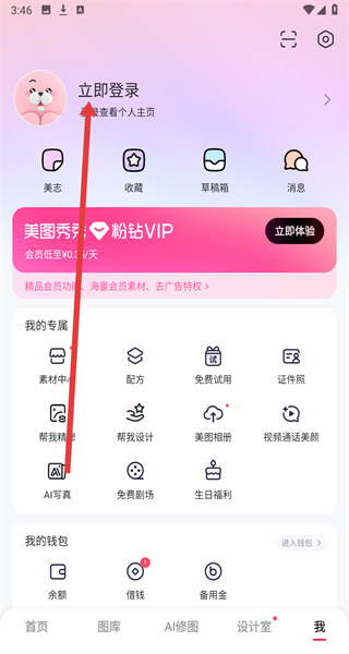 2、在進入到我的主頁中時,可以點擊上方立即登錄按鈕,準備展開登錄操作。